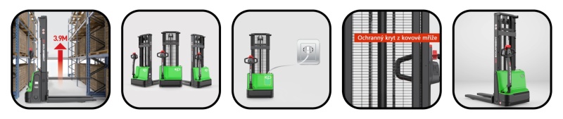 - Základní model elektrického vysokozdvižného vozíku s mimořádně snadným ovládáním, nízkými náklady na údržbu a vysokou nosností