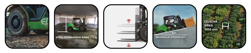 pohonem všech čtyř kol (4WD). Představuje čistou, tichou a bezemisní alternativu pro provozy, kde je každodenní