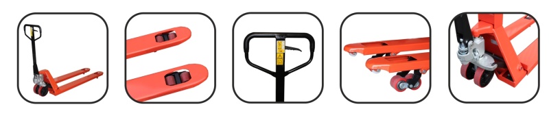 Paletový vozík HPT A20 je ideální pro efektivní manipulaci s nákladem do 2000 kg. Prodloužená délka vidlic umožňuje použít vozík pro přepravu delších břemen nebo nestandardních palet. Polyuretanová kolečka zajišťují hladký pohyb i na nerovných površích, zatímco ergonomická ojka umožňuje snadné ovládání. Vysoce odolná konstrukce zaručuje dlouhou životnost a nízkou údržbu, což dělá z tohoto vozíku spolehlivého pomocníka.