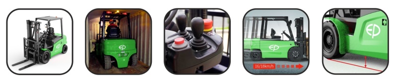 Čtyřkolový elektrický vysokozdvižný vozík EP CPD50L1 konstrukčně vychází z odzkoušené konstrukce spalovacího vozíku, ale disponuje nejmodernějším elektrickým pohonem. Kombinací těchto parametrů vznikl univerzální vozík, který využijete jak uvnitř skladovacích hal, tak i ve venkovním prostředí. Vysoká světlost vozíku umožňuje i manipulaci na nerovném povrchu. Lithiová baterie zaručuje nízké provozní náklady, tichý bezemisní provoz a zároveň umožňuje mezinabíjení, například po dobu přestávek a pracovní nečinnosti. Díky tomu vozík zvládne celodenní používání.