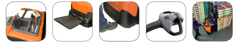 | Ostatní | bezpečnostní kolizní tlačítko, odkládací prostory, programovatelný výkon, plošinka řidiče |